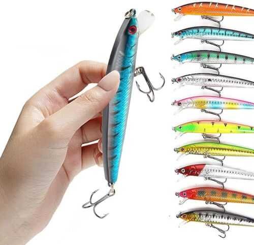10PCS Fishing Lures Minnow baits Crankbaits Jerkbait Lot Hooks Baits Bass Tackle