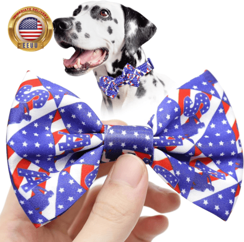 American Flag Dog Bow Labor/Veteran’S Day Pet Bowtie USA Flag Dog Bows for Large