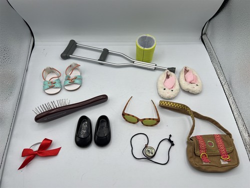 AMERICAN GIRL 18″ DOLL ACCESSORY LOT PURSE SANDALS SHOES HAIR BRUSH SUNGLASSES
