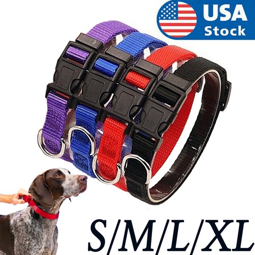 Dog Pet Adjustable Nylon Collar with Quick Release Buckle S M L XL 4Colors Puppy