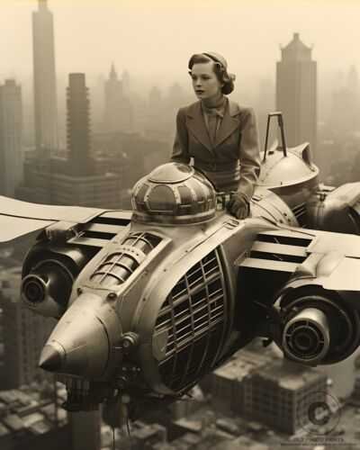 Flying Machine 1927 Photograph Futuristic City Science Fiction Art 8X10 Print