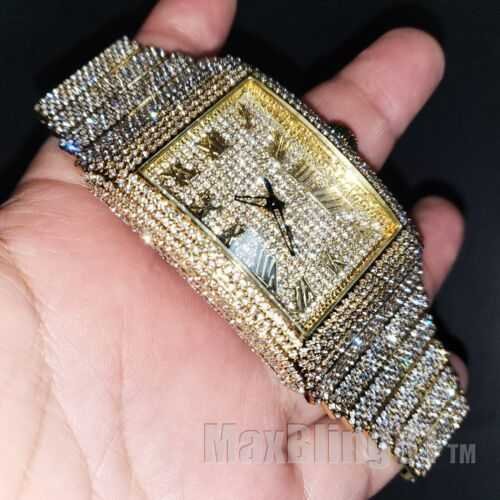 Men Full Iced Icy Band Luxury Bling Gold Finish Simulated Diamond Bracelet Watch