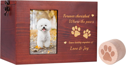 Pet Urns for Dog or Cat with Pet Hair Keepsake Box, Large Wooden Dog Urns for As