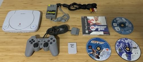 Sony Playstation 1 PSone Slim System LOT (SCPH-101) Grey 1MB Card & 5 Games! PS1