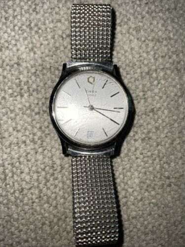 Vintage Q Timex Quartz Watch Silver Time Stretch Band For Parts Or Repair