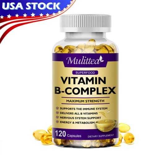 Vitamin B Complex 120 Capsules B1,B2,B3,B5,B6,B7,B9,B12, Immune Support Pills