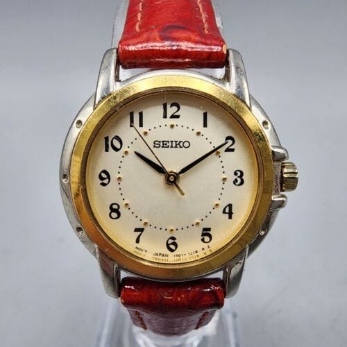 VTG Seiko Watch Women 25mm White Dial Two Tone Round 1N01-0J09 New Battery